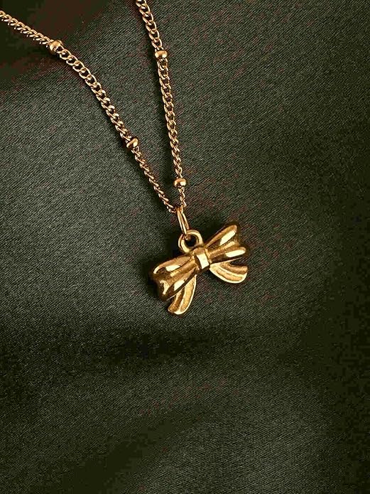 PALMONAS Gilded Bow Necklace for Women - Jewellery Gift for Girls & Women | Waterproof & Anti-Tarnish Bow Pendant Chain, Stylish & Trendy Necklaces for Ladies